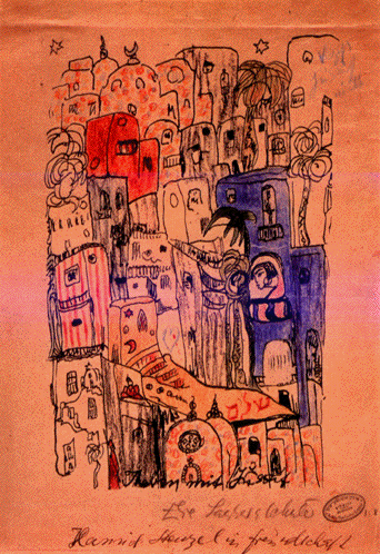 Else Lasker-Schüler, die paranoide Hysterikerin, die Nervenkünstlerin, die zeit ihres Lebens mit der sie umgebenden Stadt nicht zurecht-, aber auch nicht von ihr loskommt, baut eine neue Metropole in ihrem Herzen: die Stadt Theben das inwändige Berlin sozusagen, dessen sie Prinz und das heisst Herr ist.